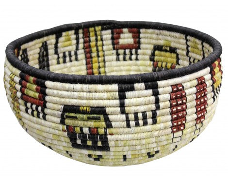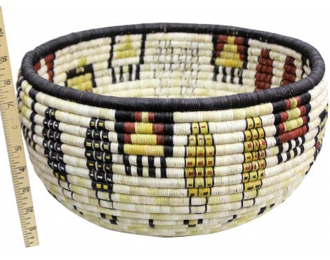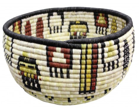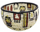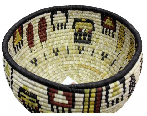 Hopi coil basket weaving isn't something you learn overnight. All of the weavers we have baskets from grew up in a house that wove baskets, something that was introduced to them from an early age. You will find these basket weavers on the Second Mesa. We have an interview with Irene Lamayaktewa who talked a little bit about the colors you find and the materials in coil basket. "We make the coil basket from straw and yucca that we pick from areas around Hopi. Many of the colors are from the yucca plant, yellow comes from yucca being harvested in winter, the white is summer, and the green can be picked any time of the year. Also, we will use sunflower for the black and Hopi Tea (hohocy) for the red." Make sure you look through our online collection. We have both baskets and plaques.