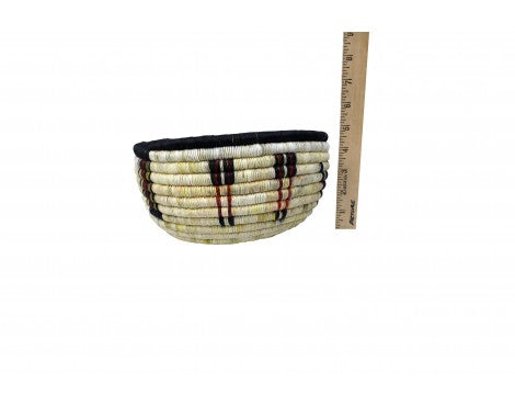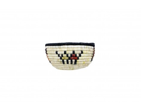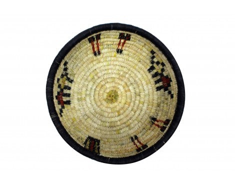 Hopi coil basket weaving isn't something you learn overnight. All of the weavers we have baskets from grew up in a house that wove baskets, something that was introduced to them from an early age. You will find these basket weavers on the Second Mesa. We have an interview with Irene Lamayaktewa who talked a little bit about the colors you find and the materials in coil basket. "We make the coil basket from straw and yucca that we pick from areas around Hopi. Many of the colors are from the yucca plant, yellow comes from yucca being harvested in winter, the white is summer, and the green can be picked aany time of the year. Also, we will use sunflower for the black and Hopi Tea (hohocy) for the red." Make sure you look through our online collection. We have both baskets and plaques.