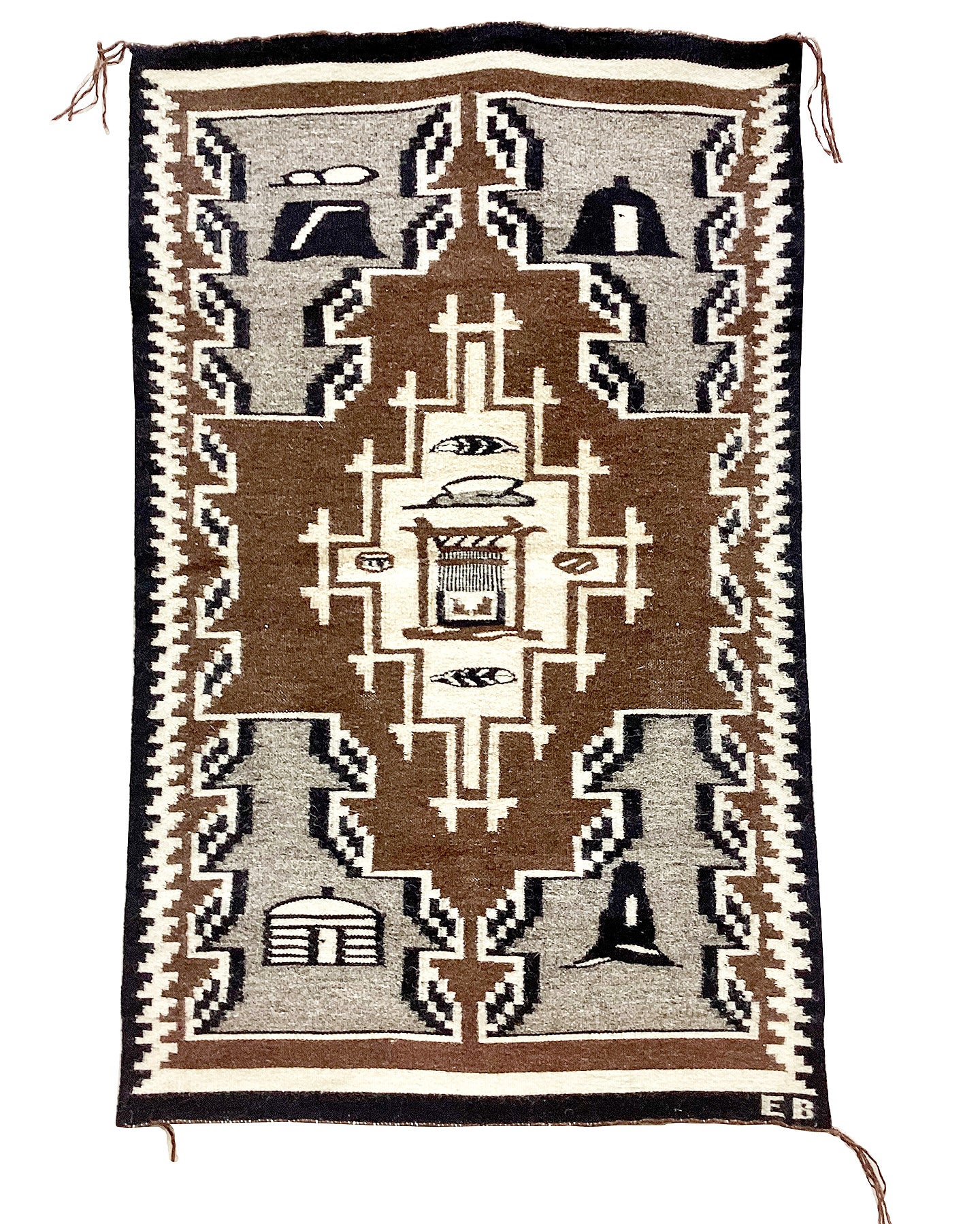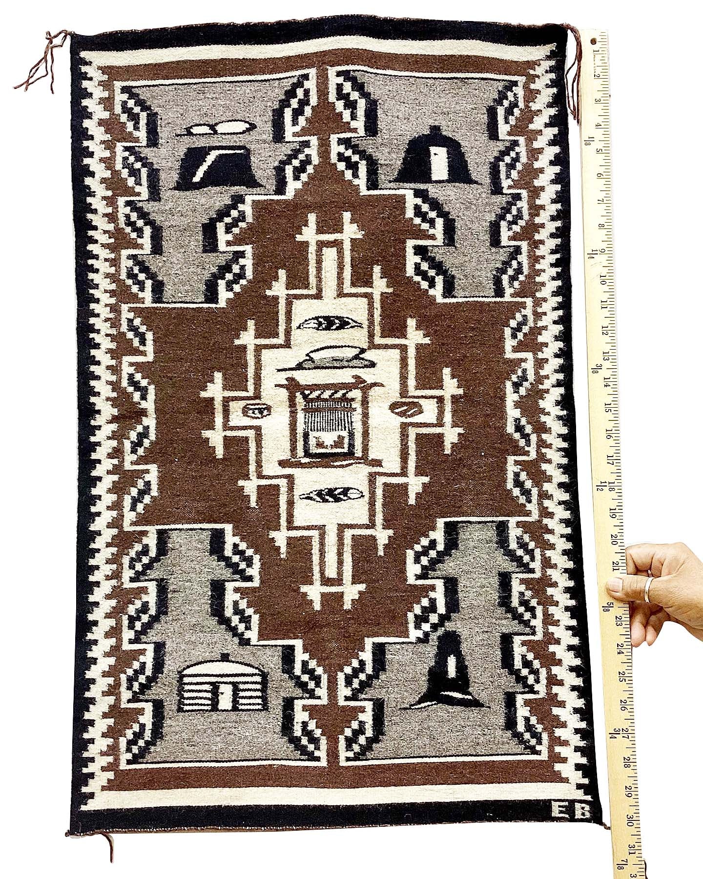 Navajo Handwoven Rug, Two Grey Hills, Pictorial, Circa 1970s, 30” x 19”