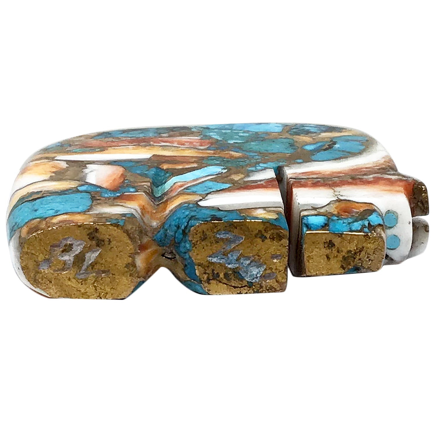 Bernard Laiwakete, Zuni Carved Fetish, Oyster, Turquoise, Bear, 2 1/4" x 2”