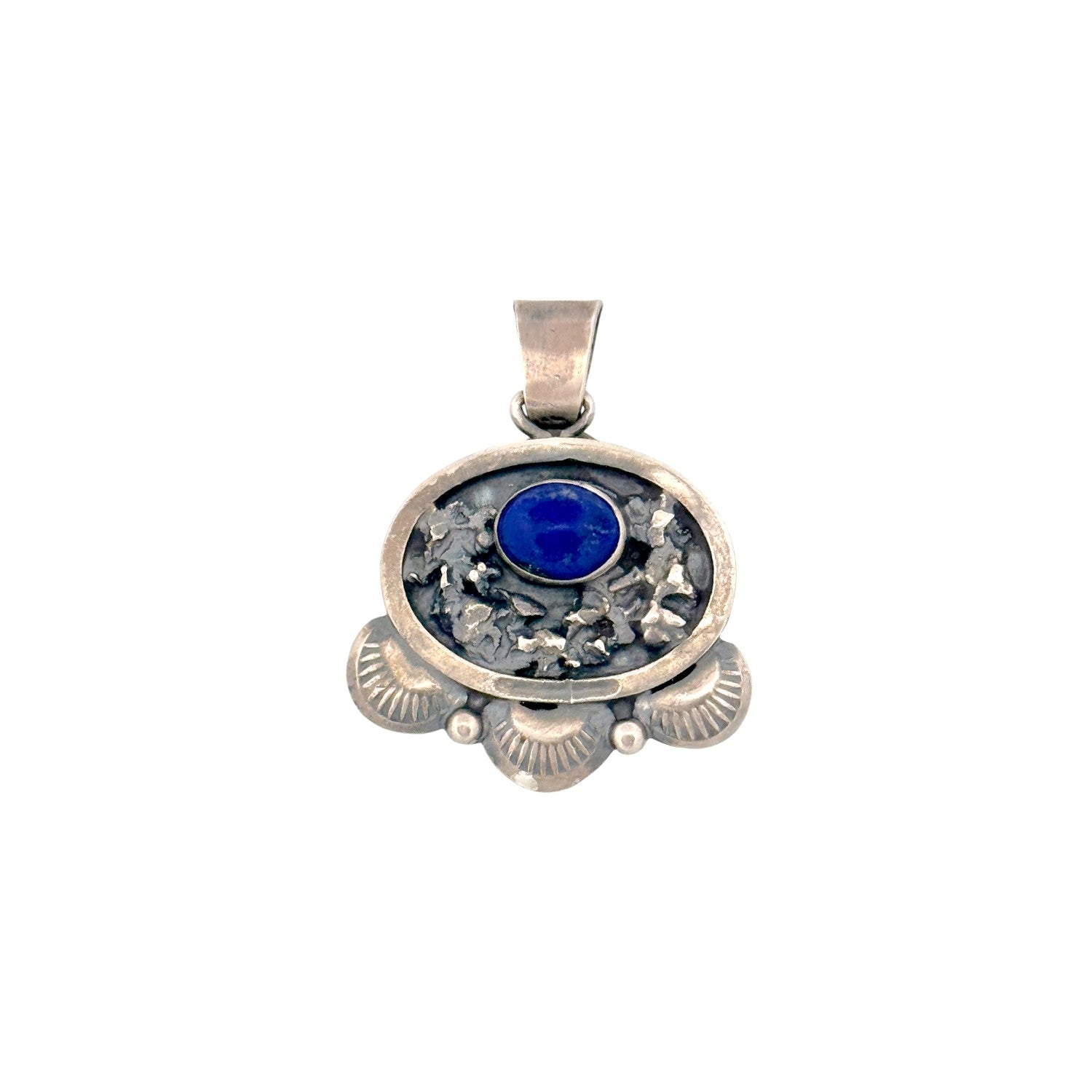 Ferlin Martinez, Pendant, Lapis Lazuli, Sterling Silver, Navajo Handmade, 1 1/2"