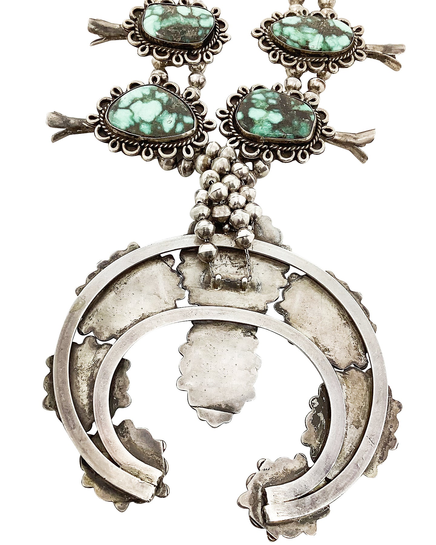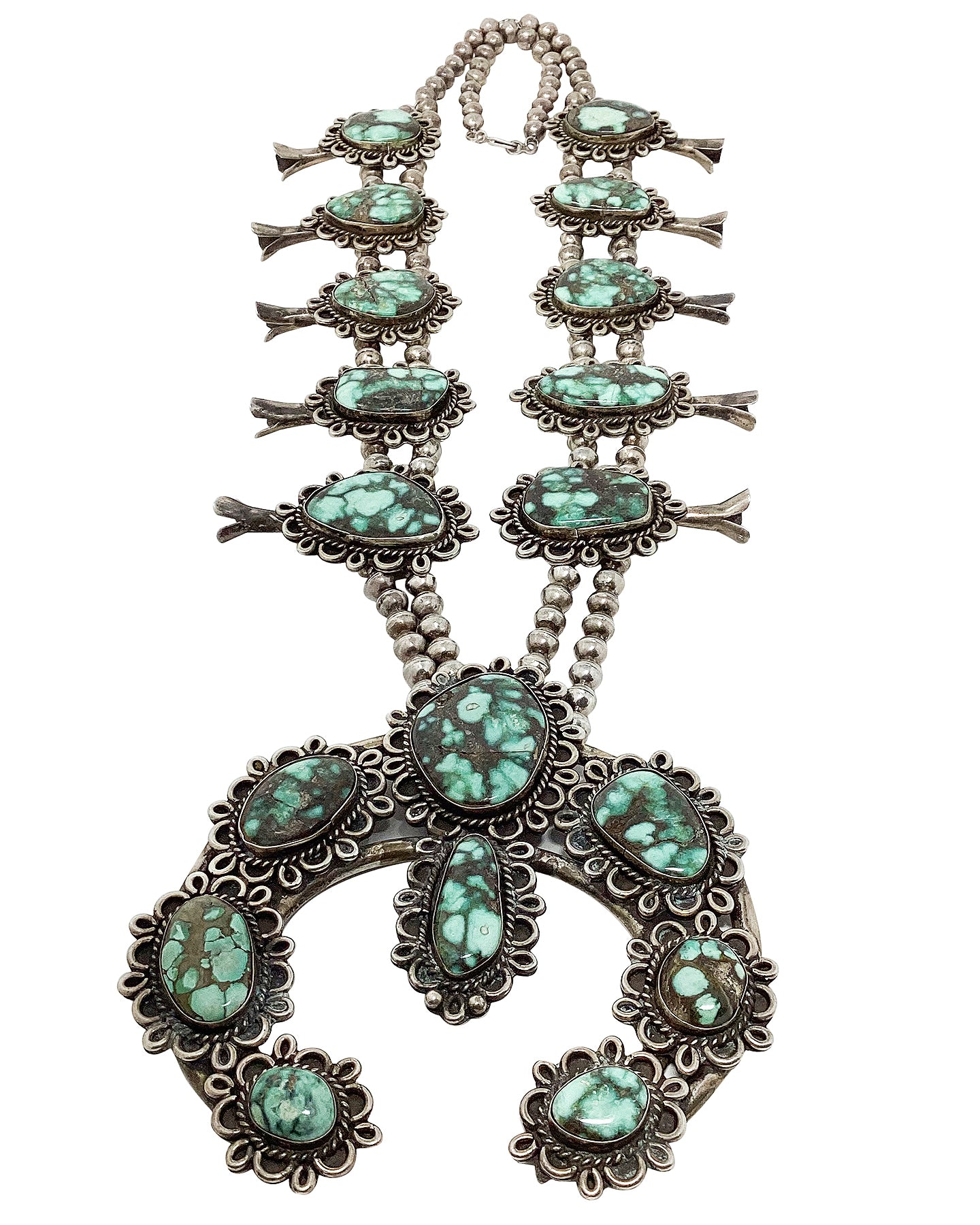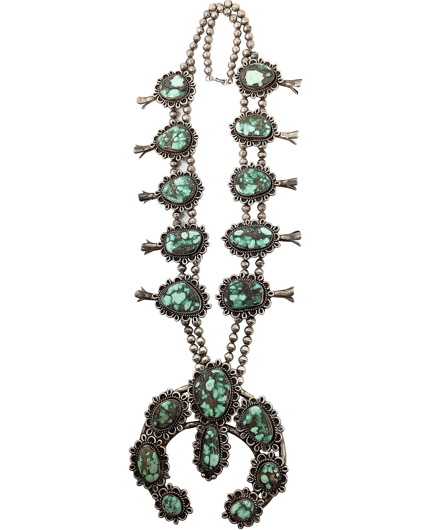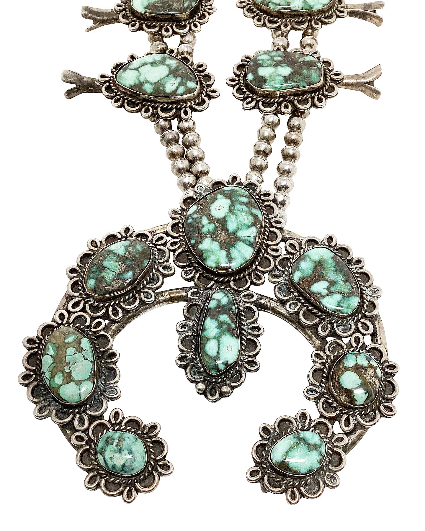 Navajo Handmade Squash Blossom Necklace, Damale Turquoise, Circa 1970, 35"
