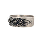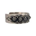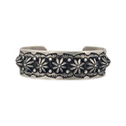 This striking sterling silver bracelet by master silversmith Edison Sandy Smith captures the timeless beauty of traditional Navajo craftsmanship. Expertly hand-stamped with floral and scalloped motifs, the bracelet showcases Smith’s signature precision and balance, blending bold repoussé work with refined detailing. The oxidized background enhances the depth and dimension of the raised silver designs, giving the piece a rich, vintage character. Crafted from solid sterling silver, the cuff has a comfortable weight and a smooth inner finish that makes it ideal for everyday wear.