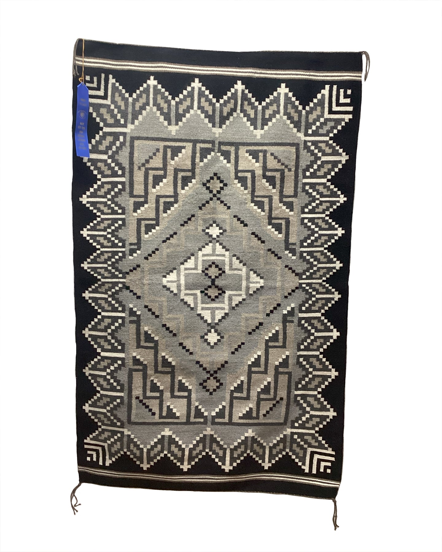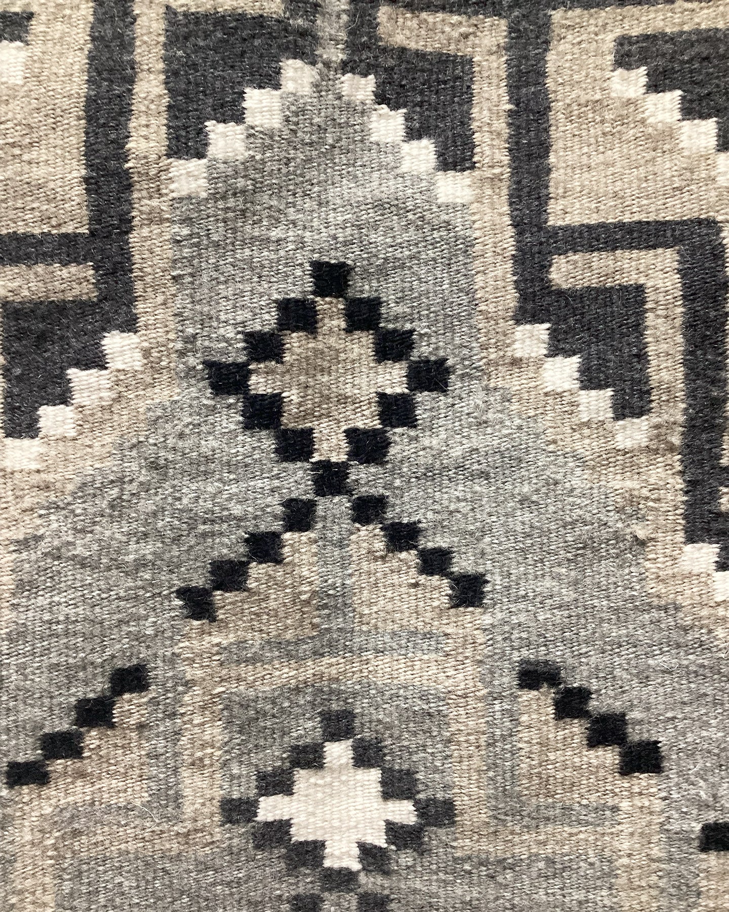 The favorite weaving for many collectors is the Two Grey Hills. Famous because of the natural sheep colors and the stiff feel of churro wool. Many Two Grey Hills will have very complex patterns, and it takes a significant amount of time to realize all of the hidden symbols. Patterned after the classic Diamond designs this is definitely a style you need in your growing collection of rugs.
