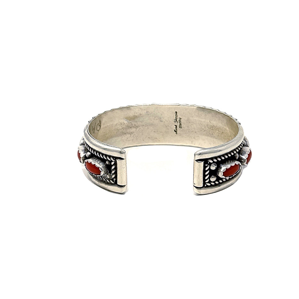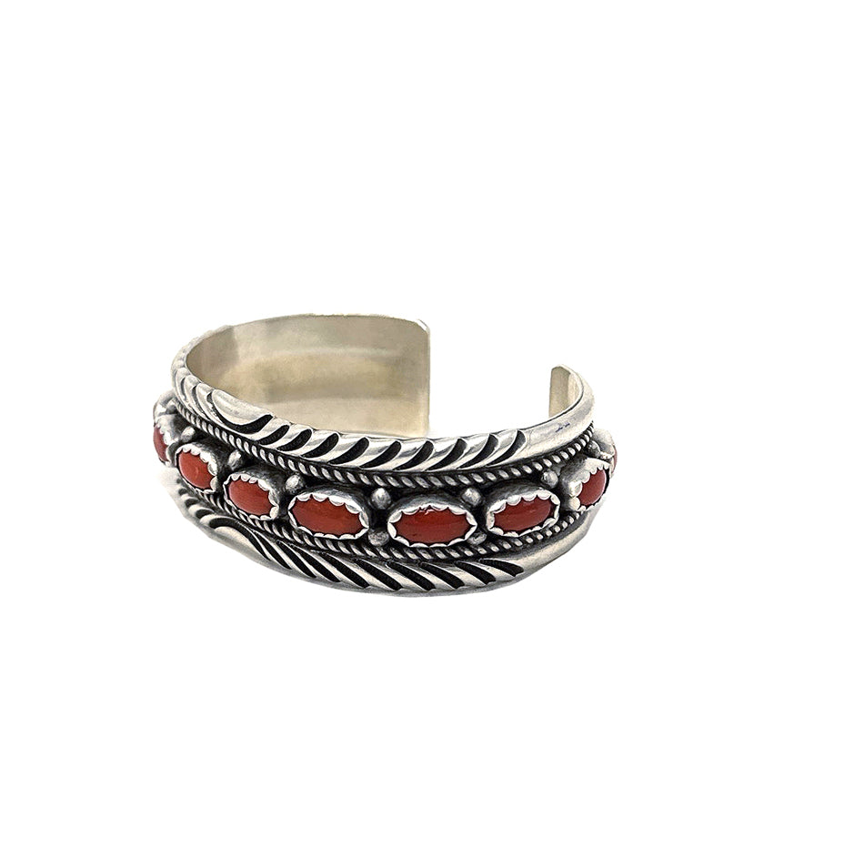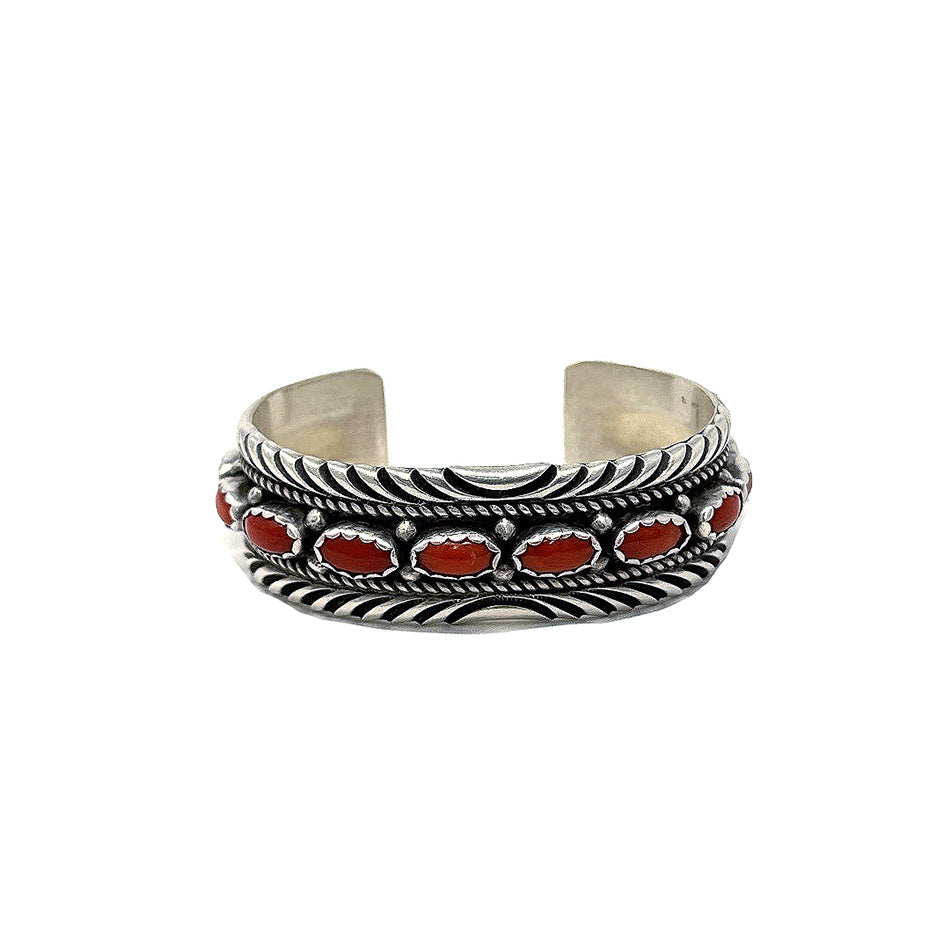 Mark Yazzie, Bracelet, Vintage, Circa 2000s, Coral, Navajo Handmade, 6 1/2"