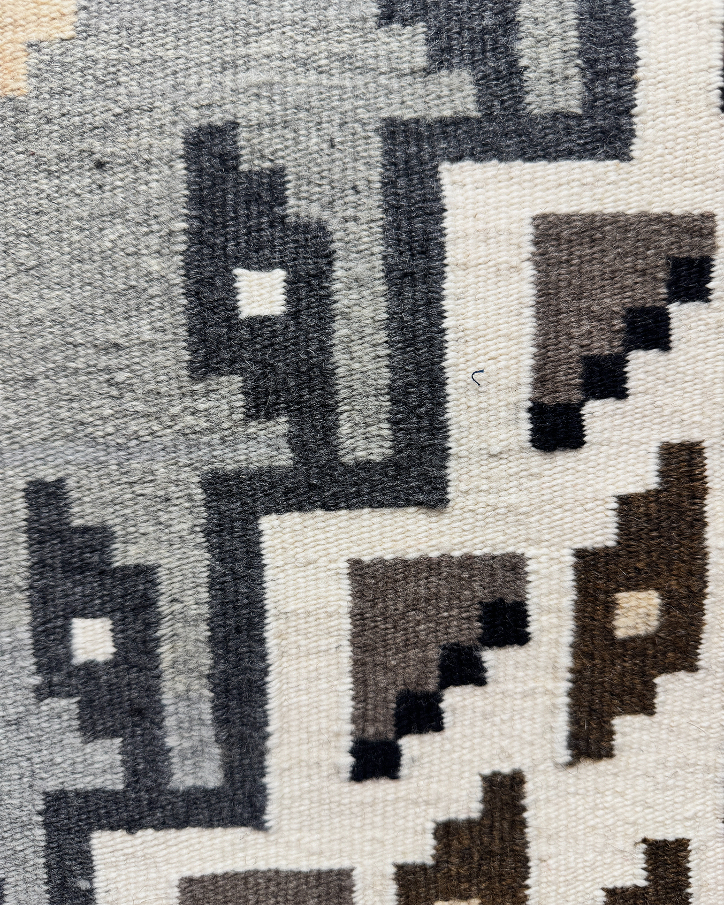 The favorite weaving for many collectors is the Two Grey Hills. Famous because of the natural sheep colors and the stiff feel of churro wool. Many Two Grey Hills will have very complex patterns, and it takes a significant amount of time to realize all of the hidden symbols. Patterned after the classic Diamond designs this is definitely a style you need in your growing collection of rugs.